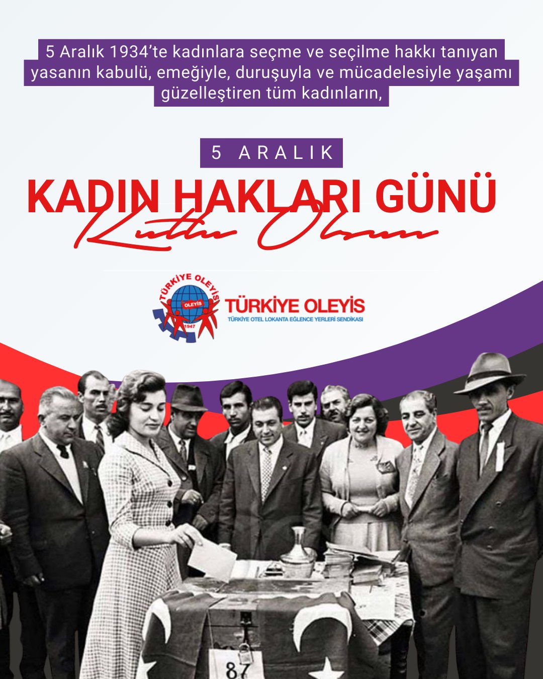 5 Aralık 1934’te kadınlara seçme ve seçilme hakkı tanıyan yasanın kabulü, ülkemizde kadın mücadelesinin en önemli kazanımlarından biri olarak tarihe geçmiştir.