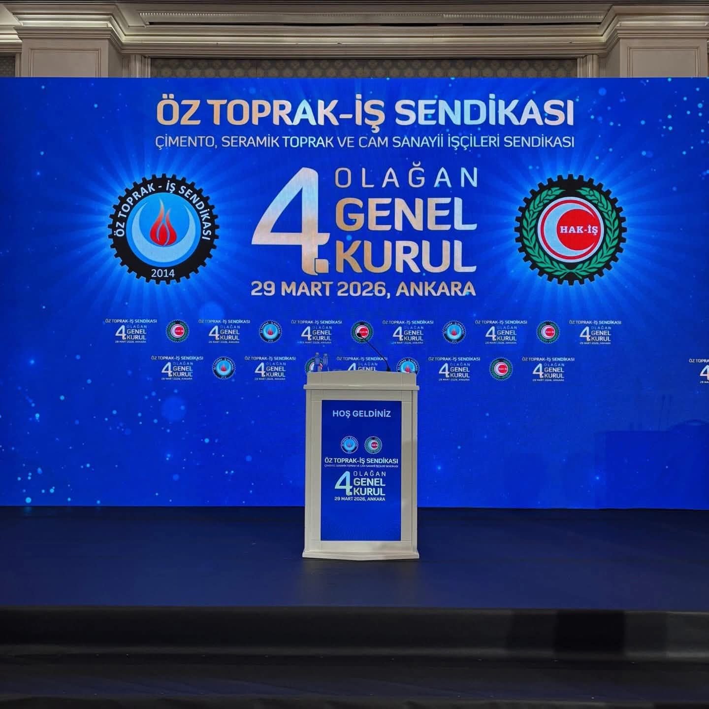 Genel Başkanımız Mehmet Keskin, 29 Mart 2026 tarihinde gerçekleştirilen Öz Toprak-İş Sendikasının 4. Olağan Genel Kurulu'na katılım sağladı. Genel Kurulun, HAK-İŞ Konfederasyonumuza ve Öz Toprak-İş Sendikasına hayırlı olmasını temenni ederiz.