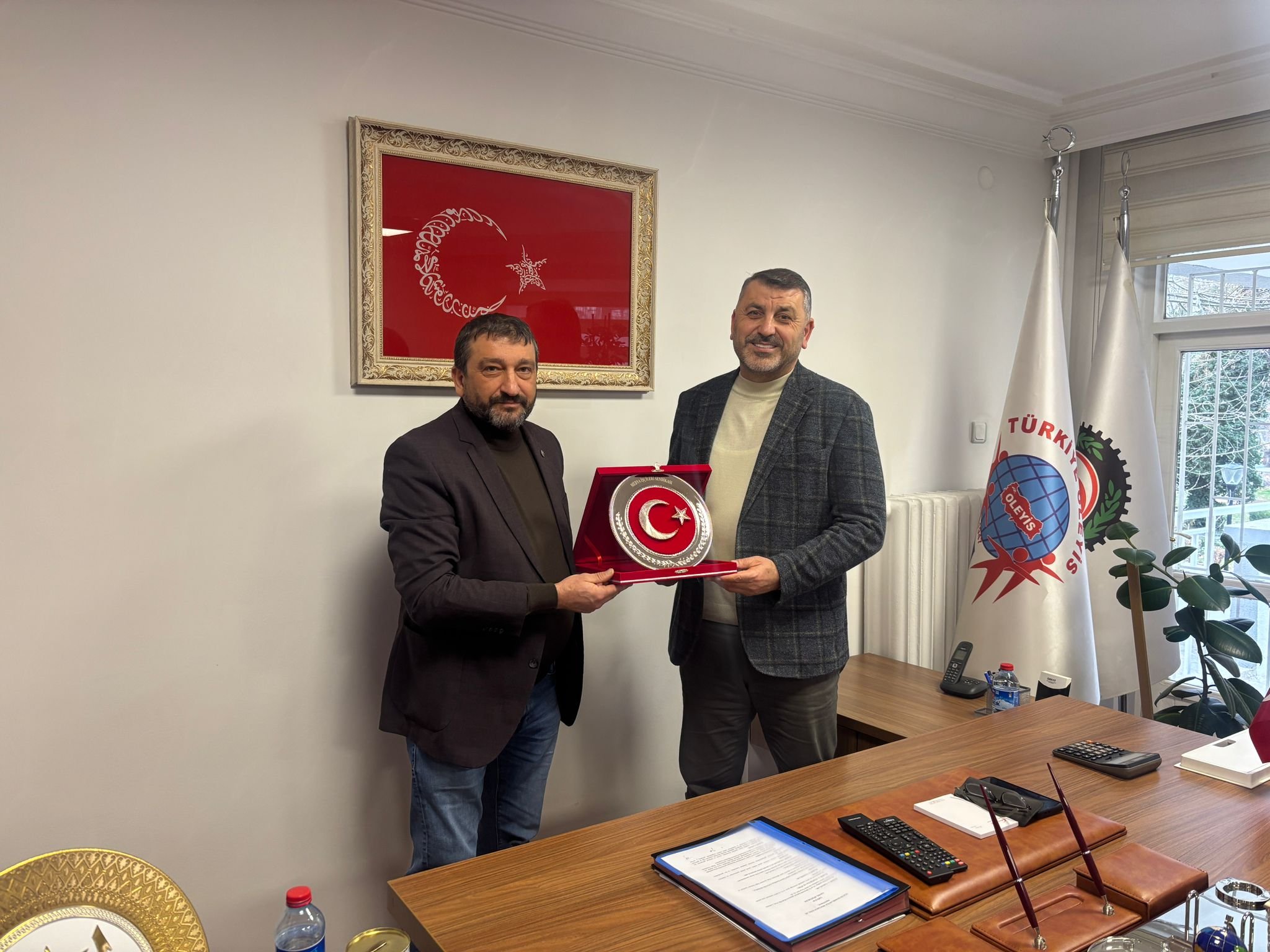 Kardeş sendikalarımızdan Öz Güven Sen Genel Başkanı Sayın Ömer Yılmaz ve Genel Başkan Yardımcısı Sayın Ümit Yalçın, Medya İş Sendikası Genel Başkanı Sayın Sezai Ballı, Öz Ağaç İş Sendikası Genel Başkanı Sayın Av. Tuncay Dolu, Öz İletişim İş Sendikası Genel Başkanı Sayın Av. Semih Aydıner ve Genel Başkan Yardımcısı Sayın Taner Aslan, Yönetim Kurulumuza hayırlı olsun ziyaretinde bulunmuşlardır.
